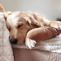 Aan beide uiteinden zitten twee grote super-squeakers, stevig weggewerkt en altijd klaar voor een vrolijke piep wanneer de baguette wordt opgepakt of rondgeslingerd. Hij voelt zacht en stevig tegelijk: fijn om vast te pakken, leuk om mee te gooien en verrassend comfortabel om tegenaan te liggen. Lambwolf zei het al… deze baguette blijkt stiekem een heerlijk hoofdkussentje.