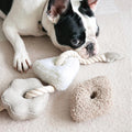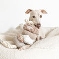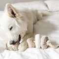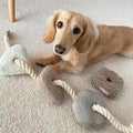 Elke BLOC heeft een eigen vorm, structuur en functie. Je kunt ze los aanbieden, meerdere combineren of vastknopen aan het meegeleverde touw voor een speels trek- of snuffelmoment. Eén van de BLOCS heeft snuffelpockets voor traktaties, terwijl andere juist zorgen voor geluid of textuur. Alles voelt doordacht, zacht en stevig tegelijk, precies wat je van Lambwolf Collective mag verwachten.